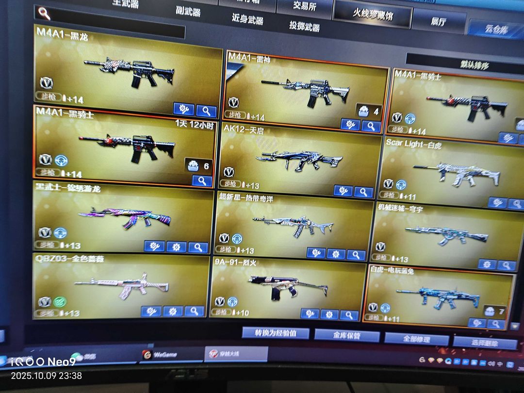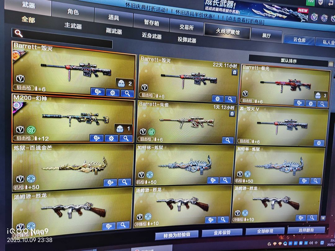 限制: 撤单率<100%才可租用此帐号装备描述:主流武器跟音效卡齐全,有鲨臂和传说角色刀战各类挑战武器。