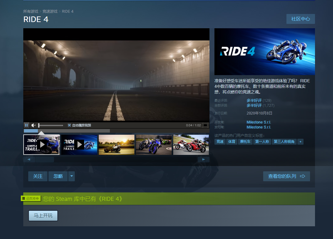 【极速骑行4-RIDE 4】终极版-全DLC-千小时-1亿金币!摩托车全解锁!抢先体验!