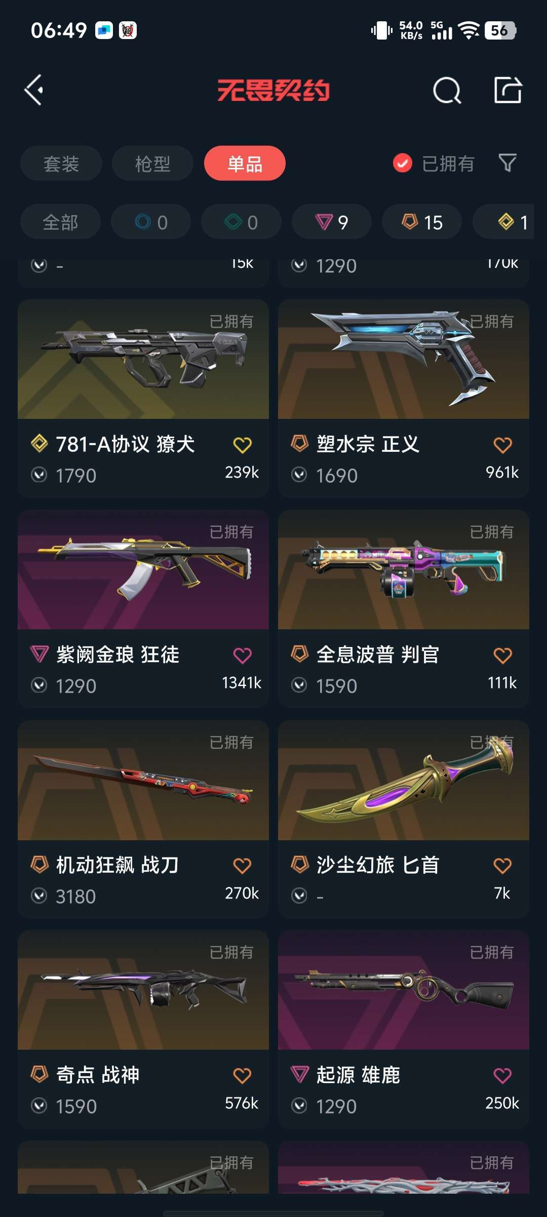 传奇数量:15