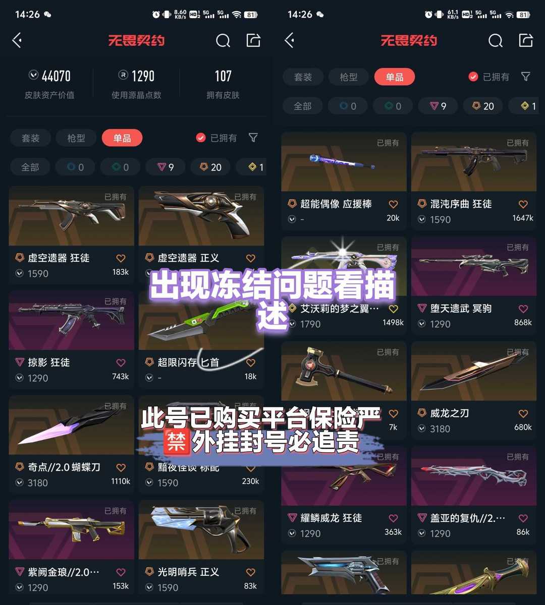 装备描述:【出现冻结情况自动解冻,我们会在5分钟内进行解冻亲】 段位随时会变❤各位老板可以查id❤请各位好好玩❤不要挂机快到时间记得续费,挂机导致禁排位会拉黑,严重上报平台封纱,异地登录多了号会冻结不是顶号老板谅 解下。好用记得收藏哦❤欢迎评论建议。 ⭐️⭐️⭐️挂机逃跑店铺拉黑 账号库存价值较大,已在公按局分局做大额虚拟资产备案,开挂盗号等行为报案处理租客IP电脑资料平台都有。登录点启动游戏旁边的对战平台,如果无请去官网更新最新版租号玩.故意放弃比赛,恶意修改ID等均会被店铺永久拉黑并且提交到平台处理。账号已进行备案,炼金,次取账号。非法盈利,诈骗,开挂等行为将追究法律责任。如有任何损坏均按照 中h人名共h国《侵权责任法》第四十九条规定,因租赁、借用等情形发生损坏,货坡坏,应由使用人承担赔偿责任进行处罚店内所有账号16岁以下不得租用,发现盗用他人身份租用借用租号平台的,均拉黑处理 租用账号默认同意付该条法律责任最后祝各位玩的开心生活事业学业更上一层楼 多行不义必自毙,人在做天在看,多做好事少做缺德事!!!