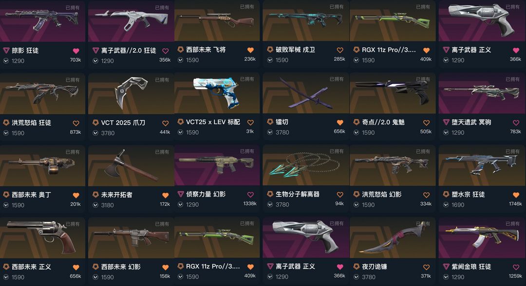 禁排✅塑水宗紫金掠夺离子2.0洪荒★vct爪刀镭切夜刃诡镰★西部未来★侦察力量★弃王冥狙★vct标配