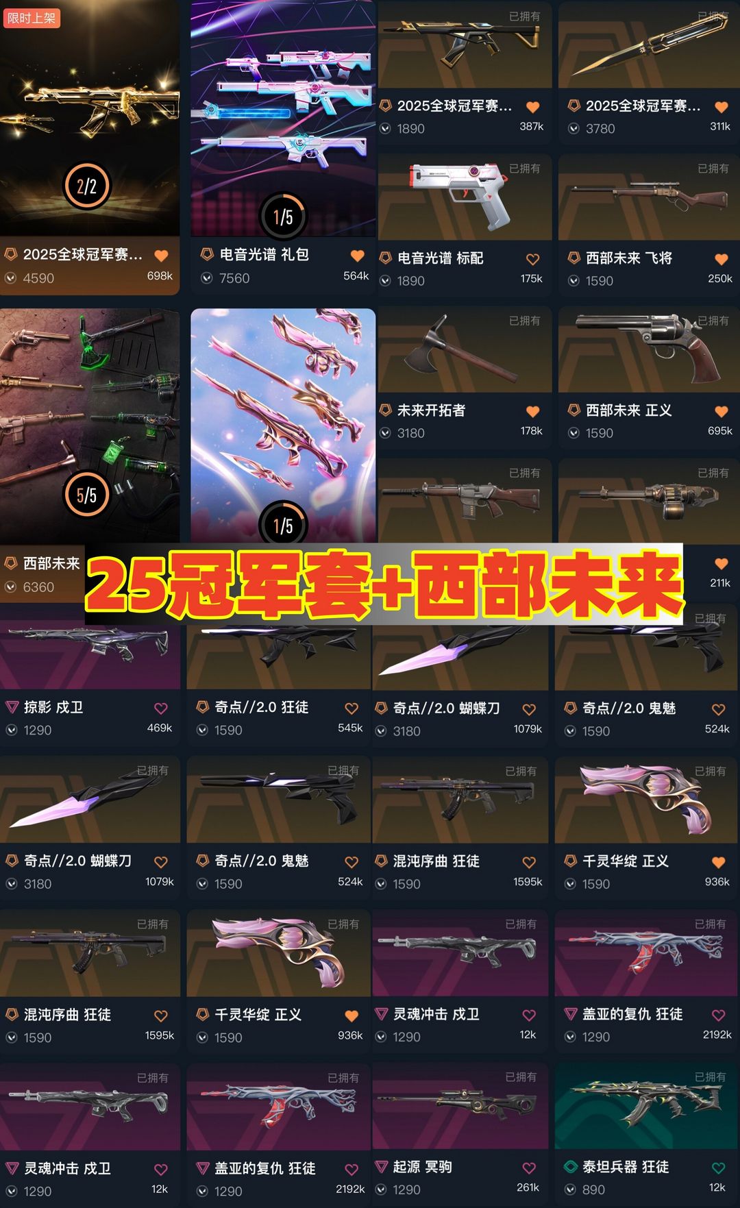 可可排❤️25冠军套❤️混沌盖亚❤️奇点蝴蝶刀❤️西部未来电音光谱❤️莲花正义起源冥狙❤️掠夺戍卫