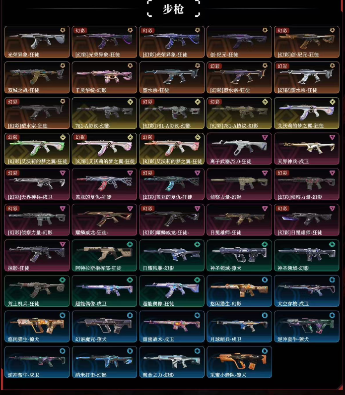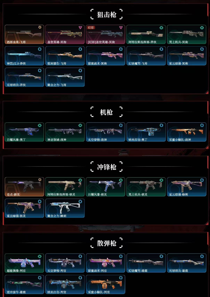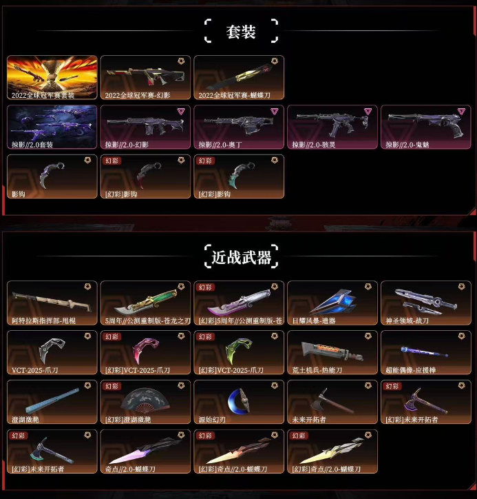 22冠军套♥掠影套♥VCT爪刀♥起点蝴蝶刀♥光荣纪元双城狂徒♥塑水猫猫盖亚狂徒♥莲花781侦查幻影