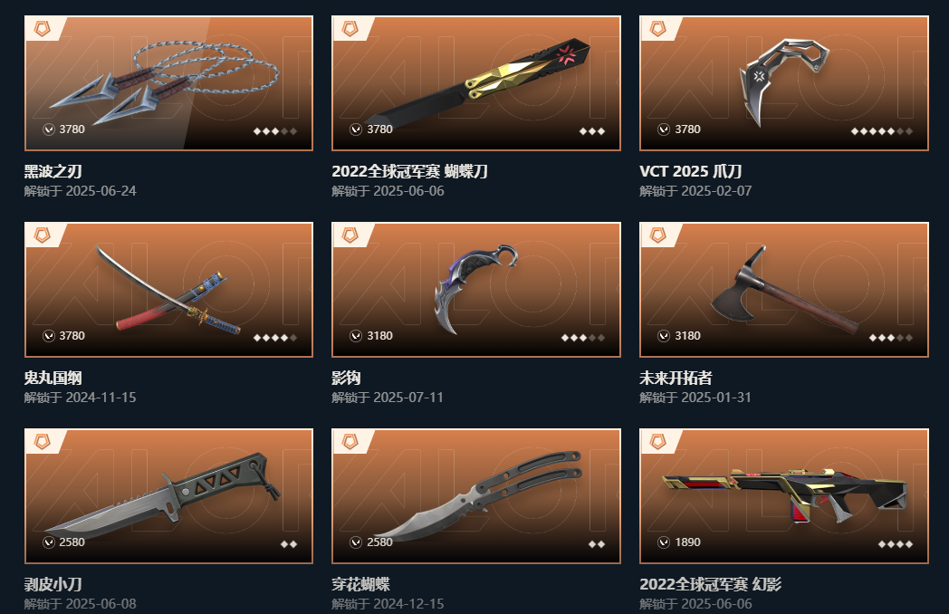 冻结秒解✨14刀24橙✨掠夺2.0爪刀✨22冠军套✨黑波之刃✨VCT爪✨西部套✨双城盖亚混沌狂徒