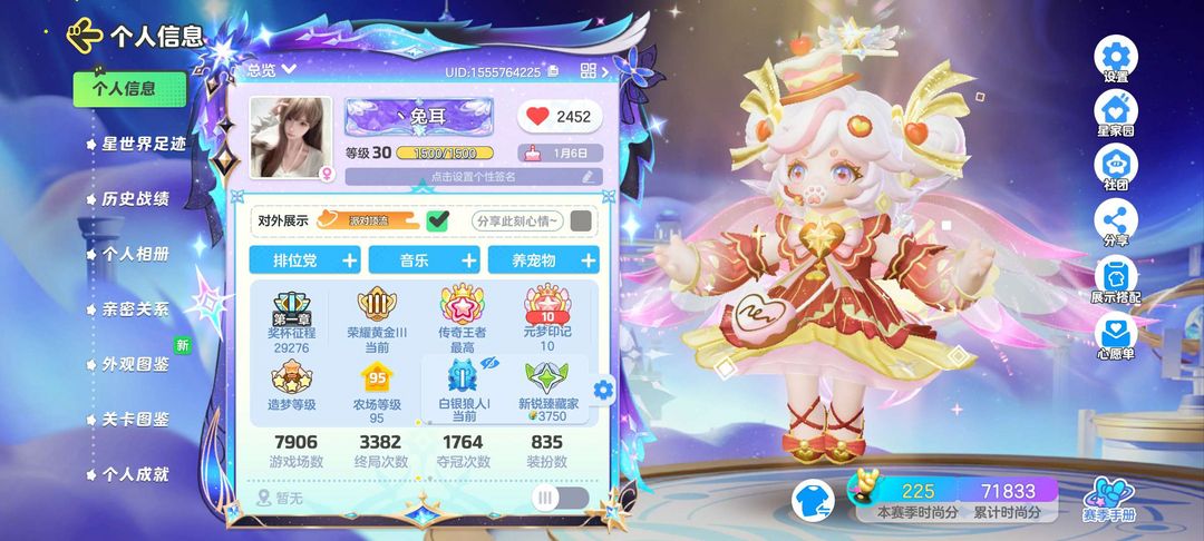开局号农场95级历史段位传奇累计时尚分71978有兴趣的宝宝可以看一下