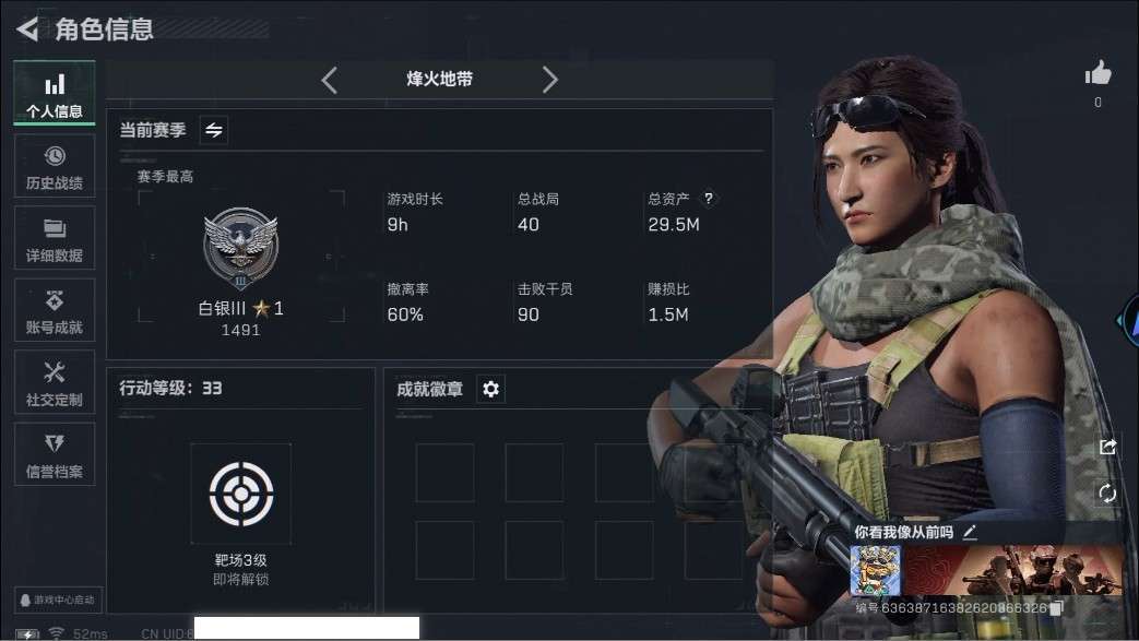 千万哈夫币 等级三十三,纯币1800万,装备700万