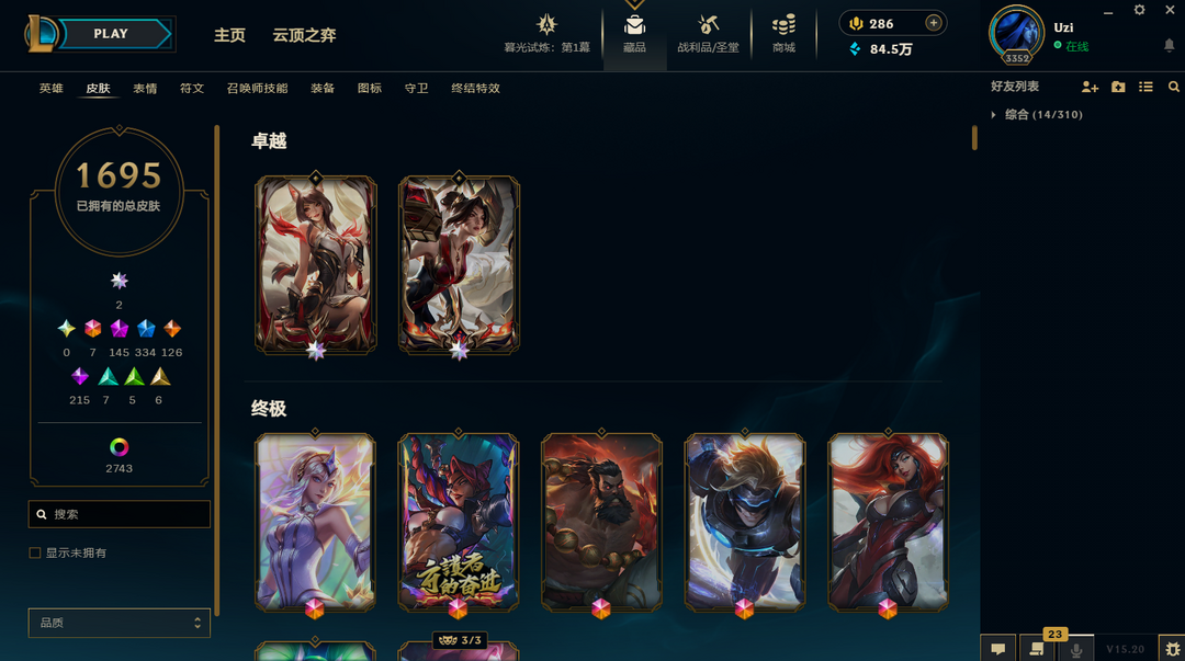 艾欧尼亚❤️原皮1700+炫彩3000+❤️宗师阶成就❤️新皮秒更❤️全至臻❤️可排位