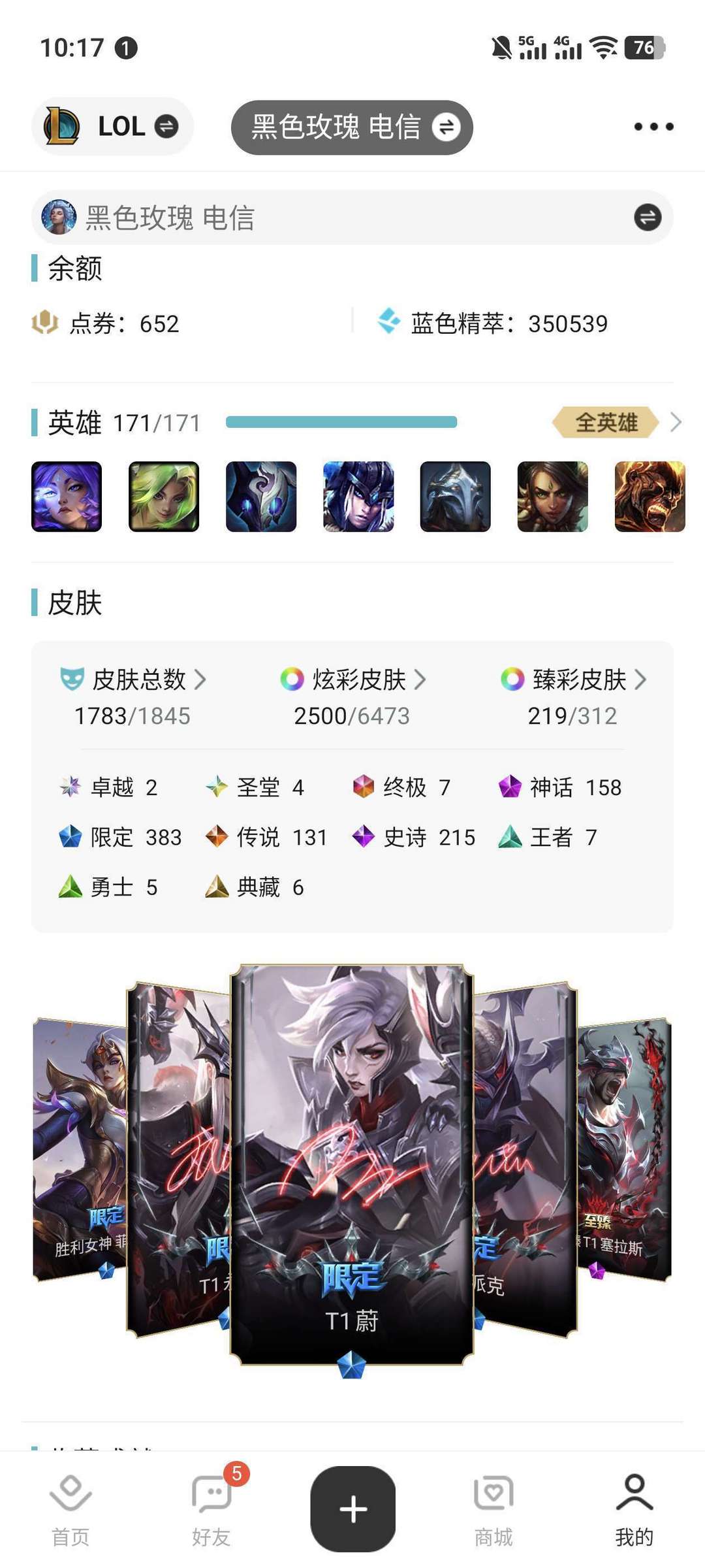 1783原皮❤️云顶神话64❤️219臻彩❤️签名uzi卡莎❤️满圣堂神话幻想❤️最新t1全套