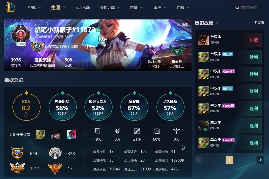 自己看吧,排位随便打,单双超凡大师,500+皮肤