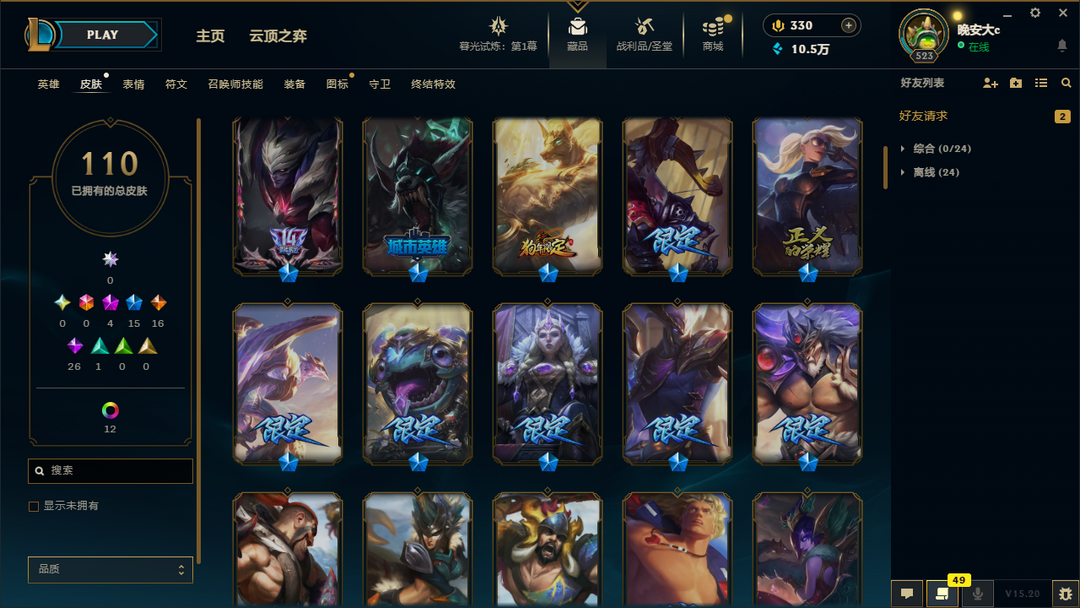 【艾欧尼亚全英雄可排位】100+精品皮肤 ❤狗年狗头、神王诺克、神王盖伦❤白菜价❤游戏体验极好