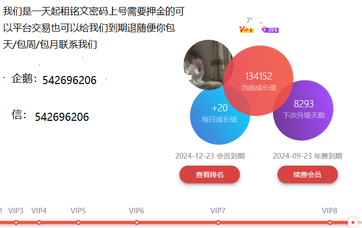 限制: 租号30次及以上 | 撤单率<25%才可租用此帐号装备描述:我们一天起租需Q/信【歪歪号码出租规则】 1、家人靠着这个号每天买个馒头,请爹们善待,多谢 2、不准在公屏发言,诈.骗等不良信息,以防出现违规冻结 3、不得进行违规行为,包括进入色ID、网络电话等非法频道, 4、不允许隐身,不可删除、拉黑好友。 5、因爵位号的 宝贵性 租号者 无权利 YY隐身隐藏频道、 如果违反了以上条款中任意一条 号主 则有权利 强制登陆 修改帐号密码 ,并终止出租协议,并且不返还出租金以及押金。 【★声明:以下两点不予撤单★】 ❶某某ID被封,理由:ID被封是某某频道皇马及以上人员封的,非官方封禁,不影响进入其他频道,且一个频道可以有无限个皇马,有作弊嫌疑,非账号本身问题,不予撤单(可以用小号进入频道找皇马解封)。 ❷加好友需要验.证,理由:歪歪加好友出现需要验.证是自动出现