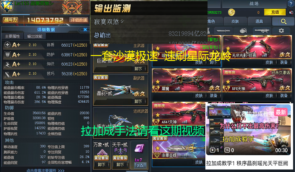 装备描述:拉加成手法请看饰品,打乱斗的点按钮侧边进入,冒险一套沙漠极速,次元一套工业极速,小破站寂寂寞。。[玩所有模式都不要恶意喷漆!!]刷关,刷龙岭星际请用阿瑞斯角色,在阵营那里选择雷霆,魔童移速更高,阿瑞斯加伤更高,阿瑞斯按鼠标中键即可加伤。有血清,旅人霏拉,魔童,阿瑞斯均200血量,有反弹天赋,88爆率 58万能强,常驻粉暴,满校准巨阙瑶光天平,满配天罚,满配黯水晶,白板次元二阶,秩序一阶有一配件,木桩一套输出8100兆,龙岭星际随便刷,24年7月份到现在配件武器齐全,均有满配件(除了赤血),玩任何模式都不要恶意喷漆!