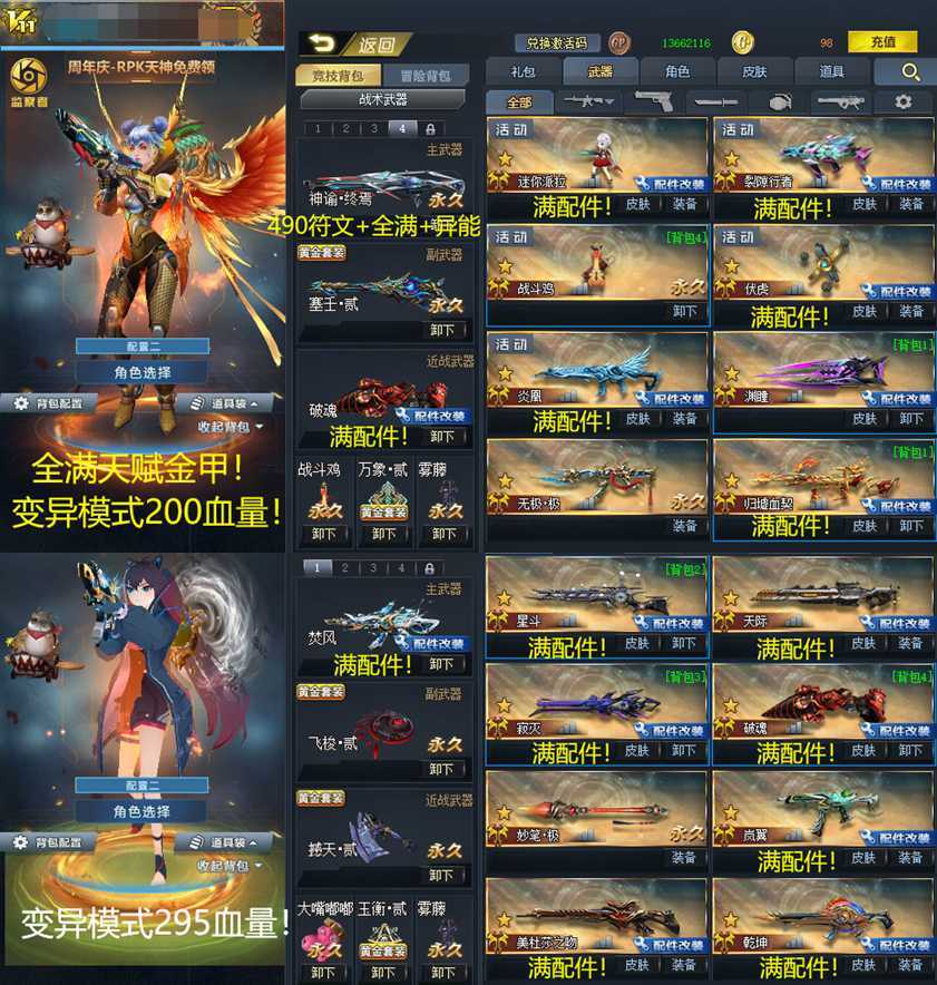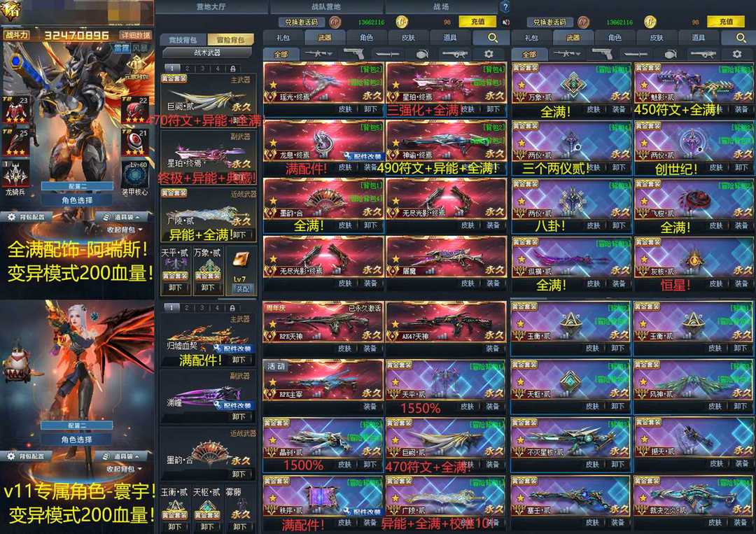 装备描述:[生死狙击网页版]分区全是账号密码登录的! v11!3300万冒险战力! 传说:瑶光终焉!终极+异能+典藏满星珀终焉!490符文异能满神谕!满龙息终焉!满墨韵合!无尽终焉!御雷血魔!AK+RPK天神!RPK主宰! 彩金:470符文异能骑士满巨阙贰!天平贰!晶刹贰!全满配件秩序贰!异能满广陵贰!万象贰!纵横贰!三个两仪贰!飞梭贰!纵横贰!灰核贰!天枢贰!玉衡贰!风神贰!撼天贰!不灭星河贰!塞壬贰!裁决贰!天罚贰!双暗水晶贰! 满配件武器:奏鸣!鬼刃修罗!幽冥!尘埃!绝境!弧光!黑炎!连城!迷你派拉!裂隙行者!伏虎!冰炎凰!无极!归墟血契!星斗!天际!寂灭!破魂!岚翼!美杜莎之吻!乾坤!棱晶!海神之怒!焚风!赤血之源!玄天!末世… v11专属角色幻灵!寰宇! 满天赋赛傅女孩!满天赋金甲!满配饰阿瑞斯! 特定角色变异模式295血量! 满级鲲仑公主!满级丧钟!4级沙皇满技能罐子头! 变异体:犀牛!青牛精!潘多拉母体!