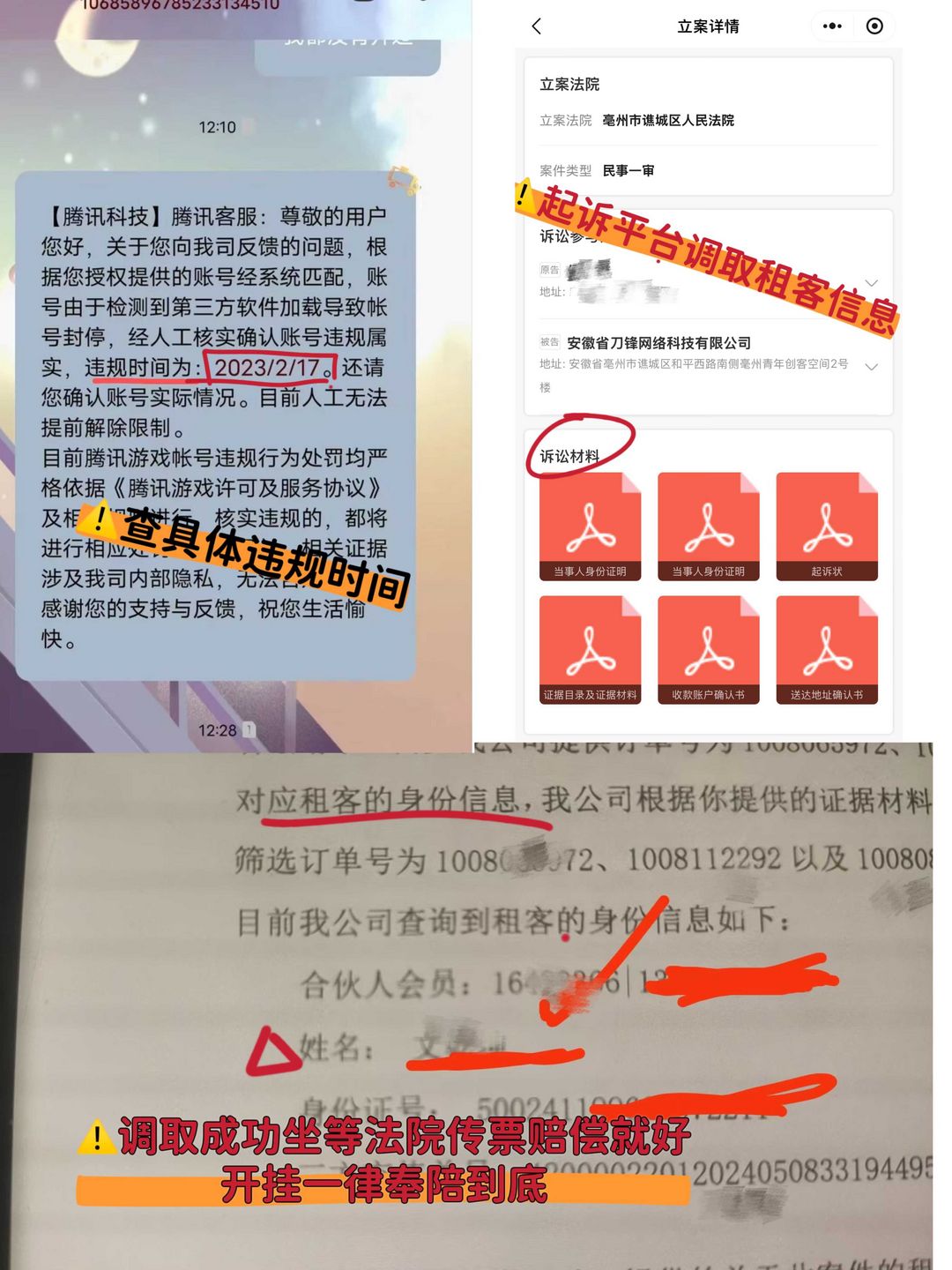 限制: 租号13次及以上 | 撤单率<25%才可租用此帐号装备描述:本账号号主是心悦3。如果遇到开挂封号, 直接询问心悦专线客服核查是哪个时间点开挂!然后再报警向平台官方核实订单信息!通过支付租号订单的或者支付宝,追踪你个人信息还有登陆地址IP。届时配合你当地公安局实施抓捕!开挂导致封号者,已经违反了租号协议,系故意毁坏他人财物罪,涉嫌金额3000元以上即可立案!本店已在在最高人民司法诉讼服务网网上立案!涉及了互联网法院管辖内的相关犯罪,等开庭吧,如果开庭不来觉得没事,基本上你那边就输了等待赔钱,赔钱按账号价值多少赔付,会提供证明让律师估价开证明,账号充值超过2万元,虽然这是民事纠纷不会坐牢但是照样会把你列入失信名单无法坐飞机,如果你是学生,等我们团队追究完到时候别不要没钱赔付,喊家里人拿钱。如果是同行属于恶意谋取利益也会留案底 本店是有团队的,如遇开挂封号一律 追究到底