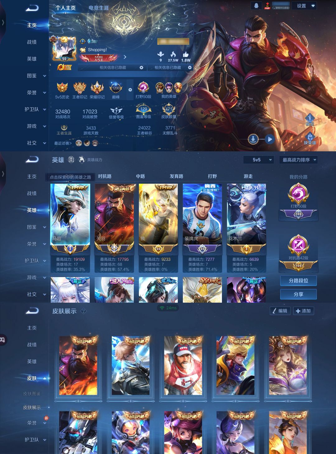 不弹脸❤10典藏赤影疾锋历史国服关羽1.7W战力马超1.9W❤打野50段全能大师❤小兵狐妖小红娘天幕