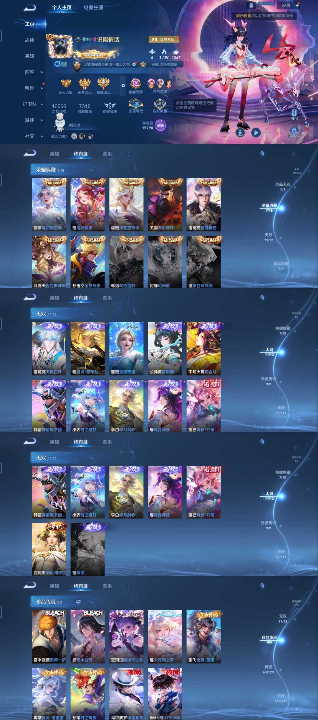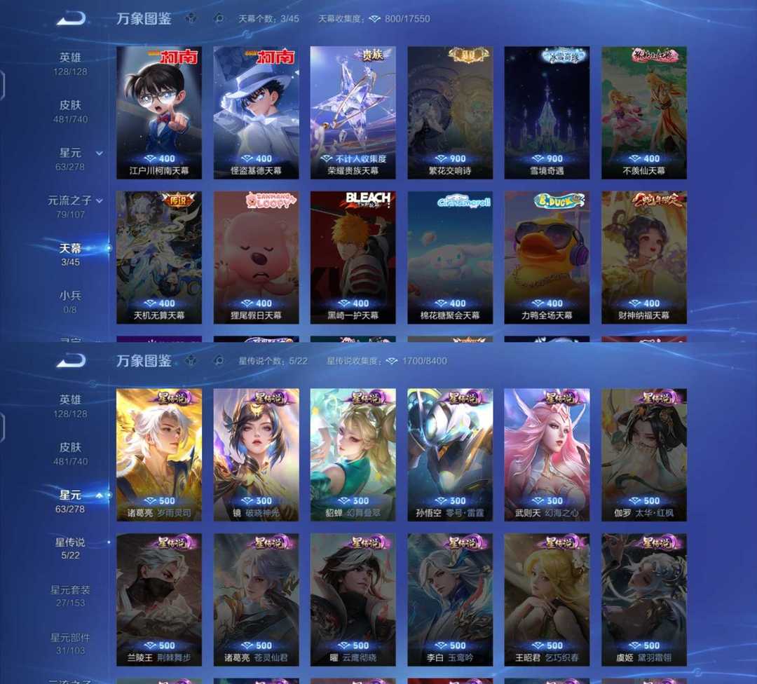 八典藏11无双9珍品63传说瑶典藏♥天机白泽♥最初的交响♥千山共赴♥雪境奇遇♥柯南基德♥最新皮♥