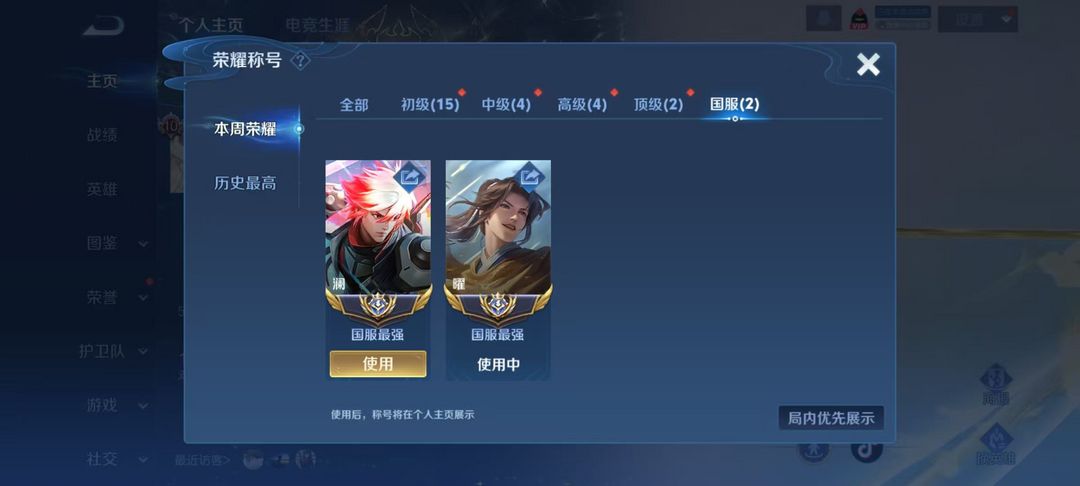 游戏区服:王者荣耀-QQ安卓-QQ账号 -手Q485区-辉光同辰