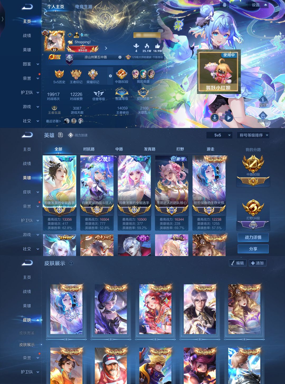 3大历史国服小乔王昭君甄姬❤在榜中路80段❤14典藏幻阙歌❤小兵狐妖小红娘❤4极品天幕魔方亮法王