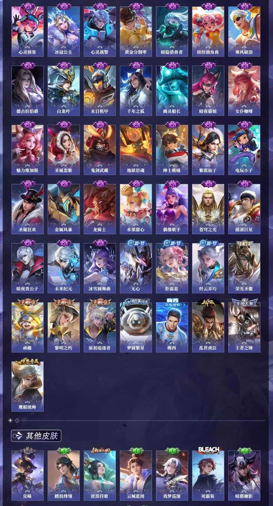 【C240】贵族V10~510皮肤11水晶82传说怪盗基德蛇年澜,九霄神辉,银白咏叹调,倪克斯神谕,