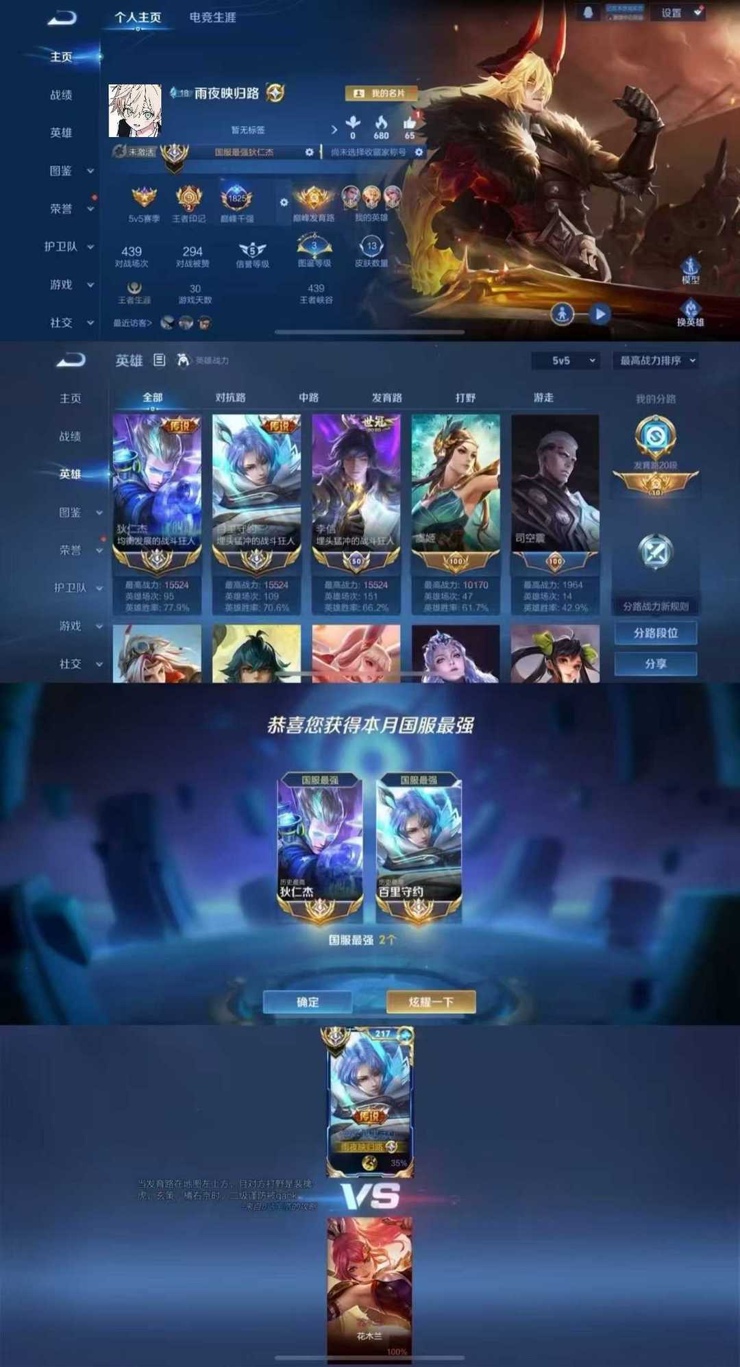 ⭐正式服10月双大国服狄仁杰守约⭐超绝胜率⭐极品带妹号⭐️