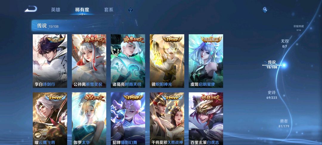 装备描述:历史国服最强大国标元歌1.5w 小国标李白1.5w 242皮2水鸣剑曳影大秦宣太后白虎志炽阳神光诗剑行