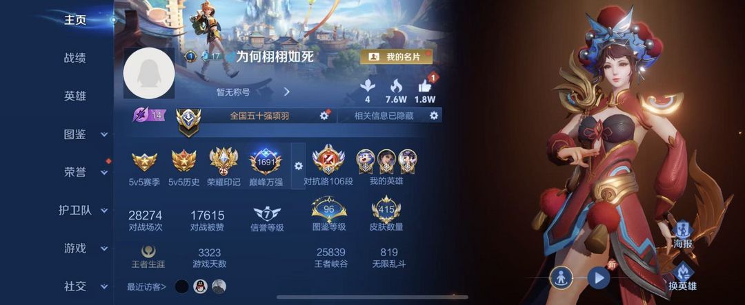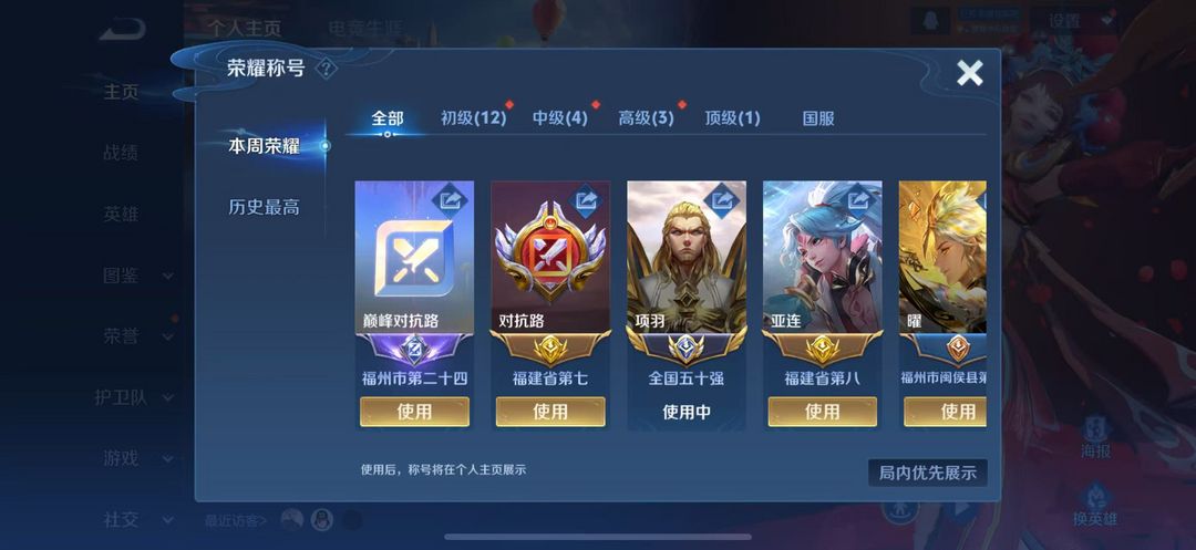 小国标项羽在榜⭐省标亚连⭐106段对抗⭐巅峰闪电框⭐可排位/禁巅峰
