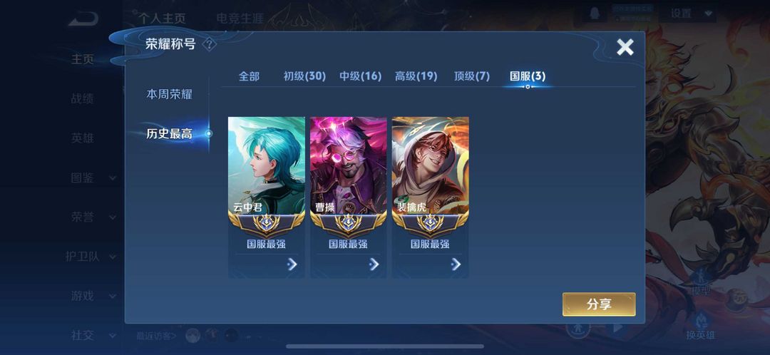 游戏区服:王者荣耀-QQ苹果-QQ账号 -手Q132区-瀚海图兰