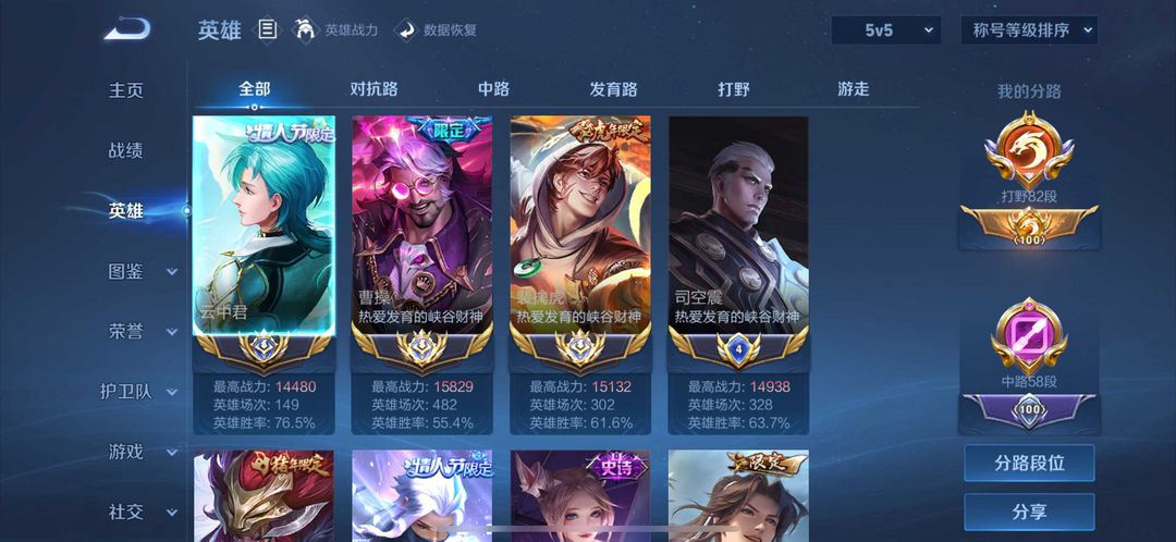 82段在榜省标打野⭐10国标⭐3大国7小国⭐大国服裴擒虎⭐大国服云中君⭐大国服曹操国标玄策魔方亮亮