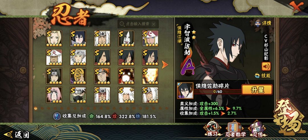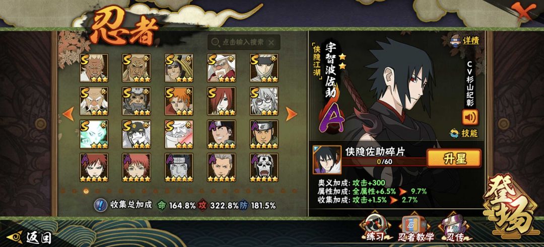 侠隐佐助全套已秒☀五影斑☀2800万顶配☀360全忍者☀漂泊带土☀51全S☀全满配置☀全装扮秒一切