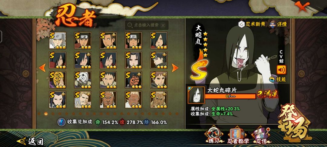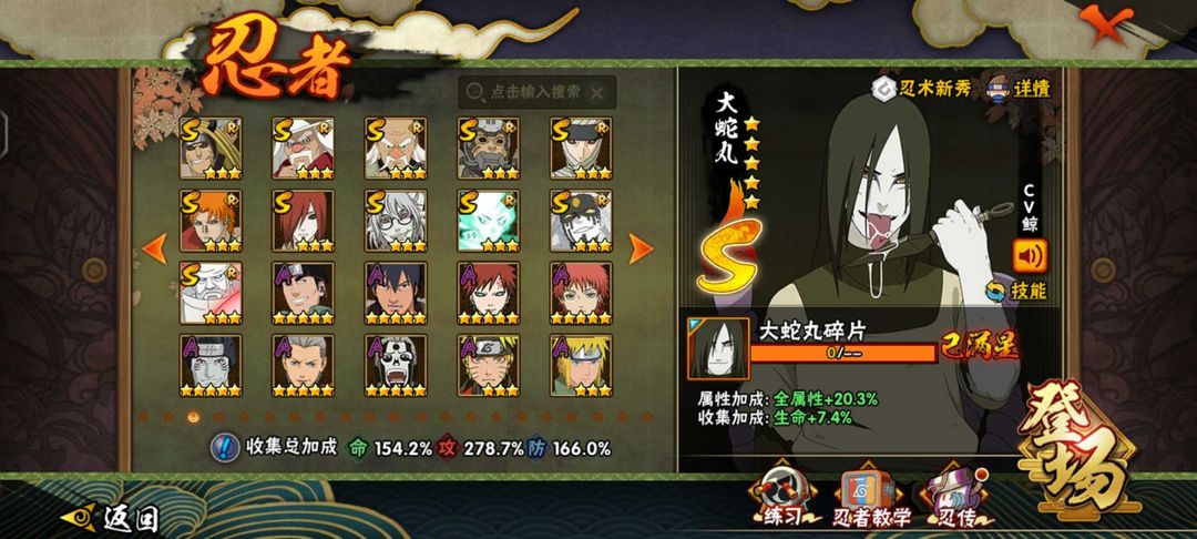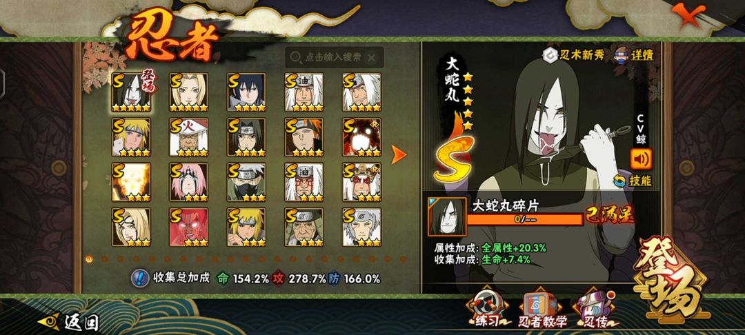 装备描述:全s忍账号全s忍账号✨舍人,解斑,三忍自来也✨永恒佐助✨阿斯玛、鬼鲛组织皮肤✨九喇嘛鸣人✨桃矢博人✨新春止水✨忍战大野木✨死门✨254忍✨鬼鲛组织皮肤狂野鲛鲨✨忍战带土✨木叶创立斑✨新春止水✨大野木✨白面具✨秽土柱间✨✨青年水门✨熊猫等等(详情可看图) 提示●游戏新机制:上号时上个租客还在线会直接显示在别处登陆,重新登录顶掉就行,我是不会恶意顶号