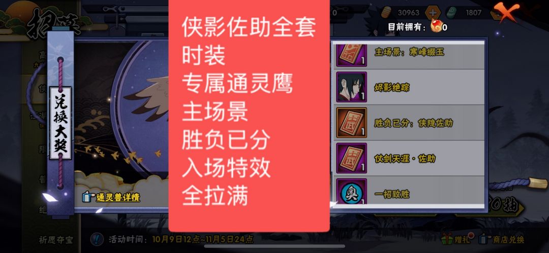 全套侠隐佐助+时装+通灵+胜负已分+入场效果+主场景❤氪金5万❤️全忍者 超高魅力❤️满通灵