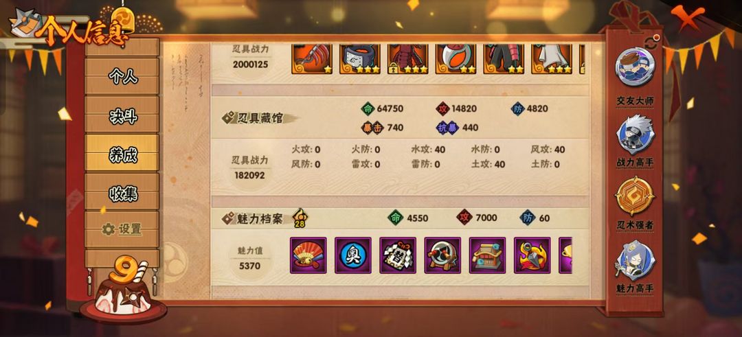 装备描述:佐卡卡西✨忍战雷影✨漩涡博人桃式秽土解斑✨永恒佐助✨九喇嘛鸣人✨忍战带土✨死门凯✨青年长门普通人