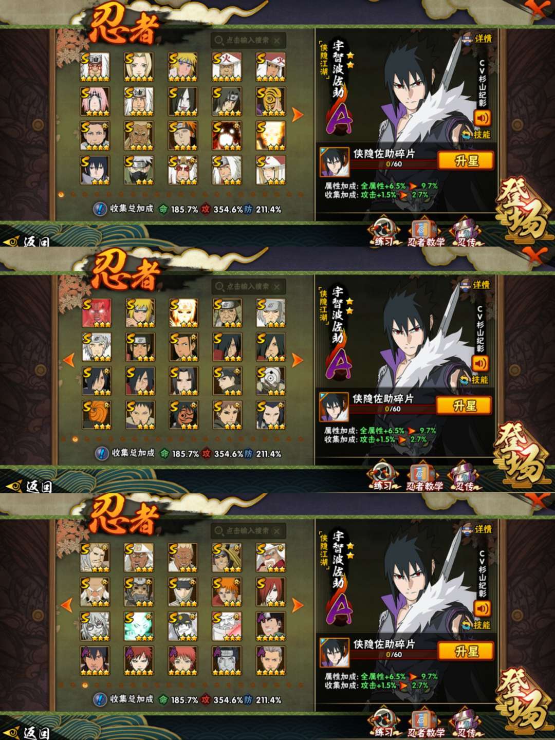 侠隐佐助⭕五影会谈斑已秒⭕3400万54S全忍者全通灵⭕黑绝⭕漂泊带土⭕多奥义时装高氪满配3000w