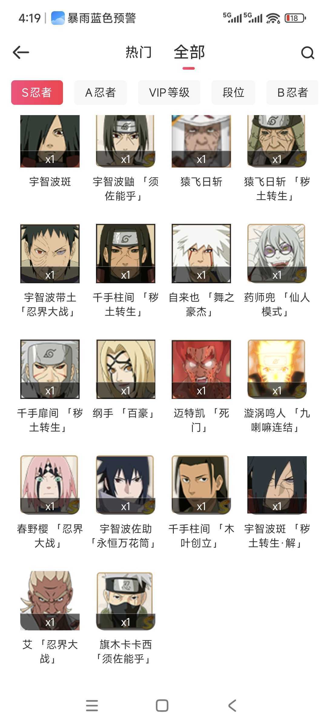 装备描述:欢迎来到超影租号小店,火影能带来快乐也你带来自闭。有梦想你也许就是火影忍者下个超影♥ 账号如标题。忍者看上图。不要动金币和跟高招卷。 。账号可以段位赛。安卓区。 喜欢的话点收藏。 祝你游戏愉快O∩_∩