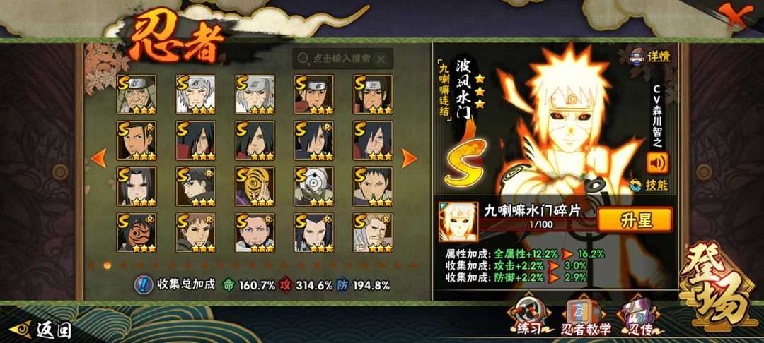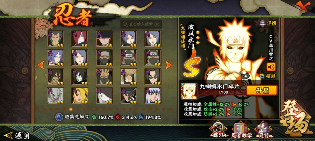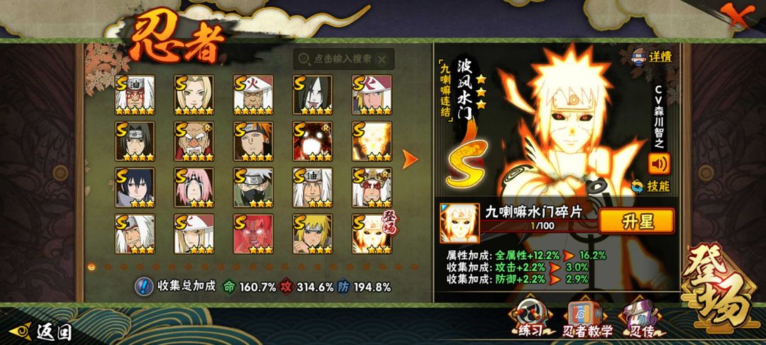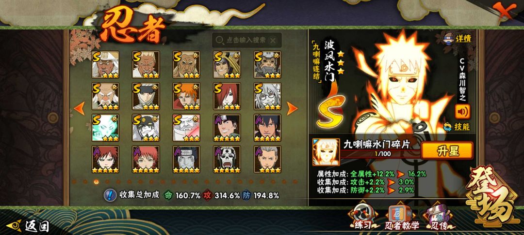 冠名,372忍者,全53S,72a金身水门,初代风影烈斗,六尾鸣人,漂泊带土,须佐卡卡西,,天道