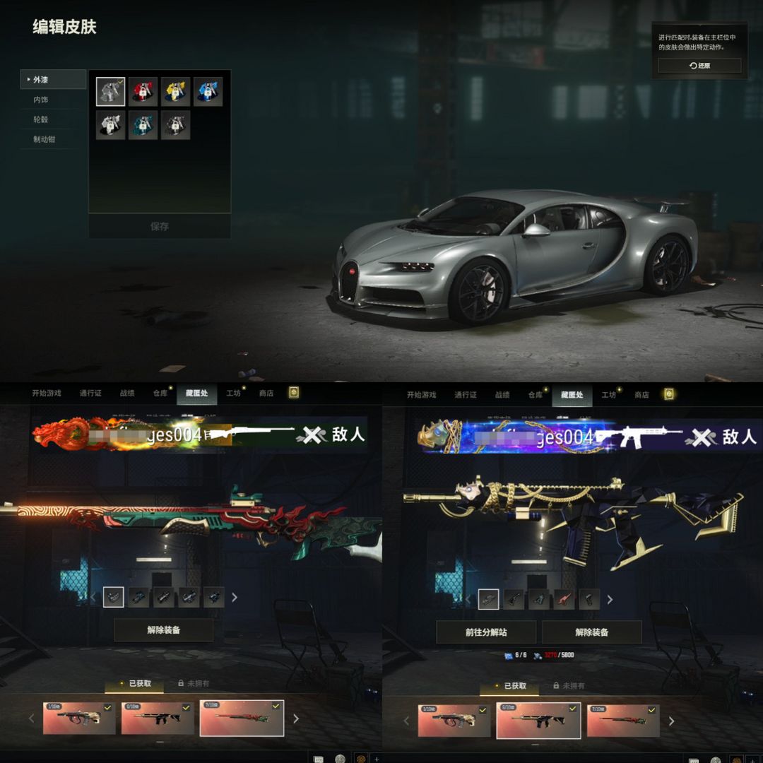 豪华布加迪超级跑车⑦级孙悟空M24⑥猪八戒M416②小兔MK12①弥诺AUG