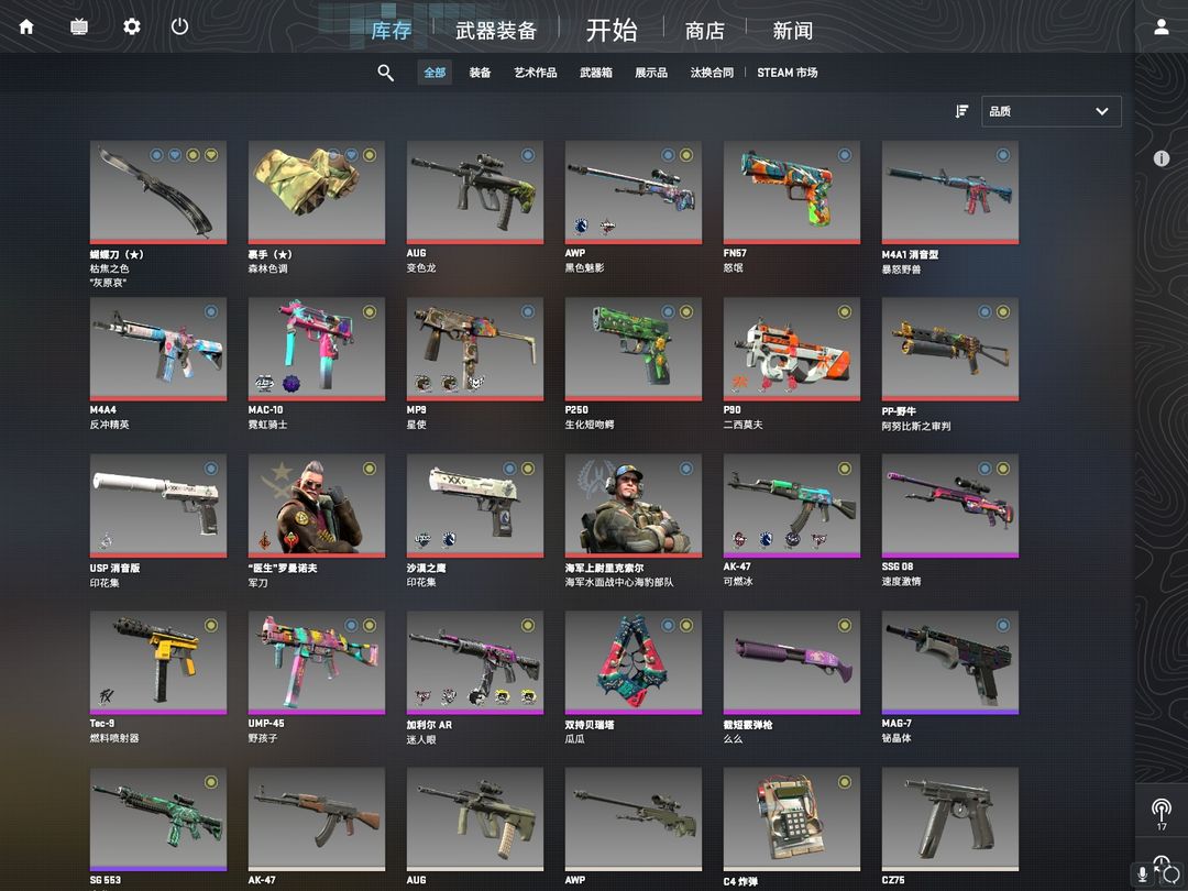 可完美C+ 1666 5E优先B❤️蝴蝶刀 裹手❤️反冲精英m4 黑色魅影awp 双探员 武器全套