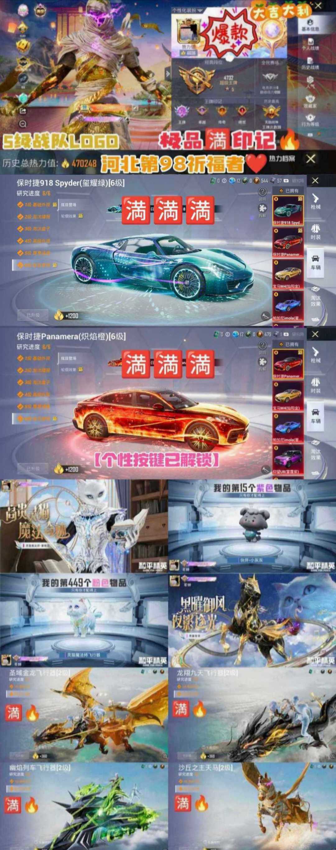 【河北第98祈福者】满级⑩套红 双满级保时捷满印记金标⑱把9级枪⑨升级车48万热150粉80特28车