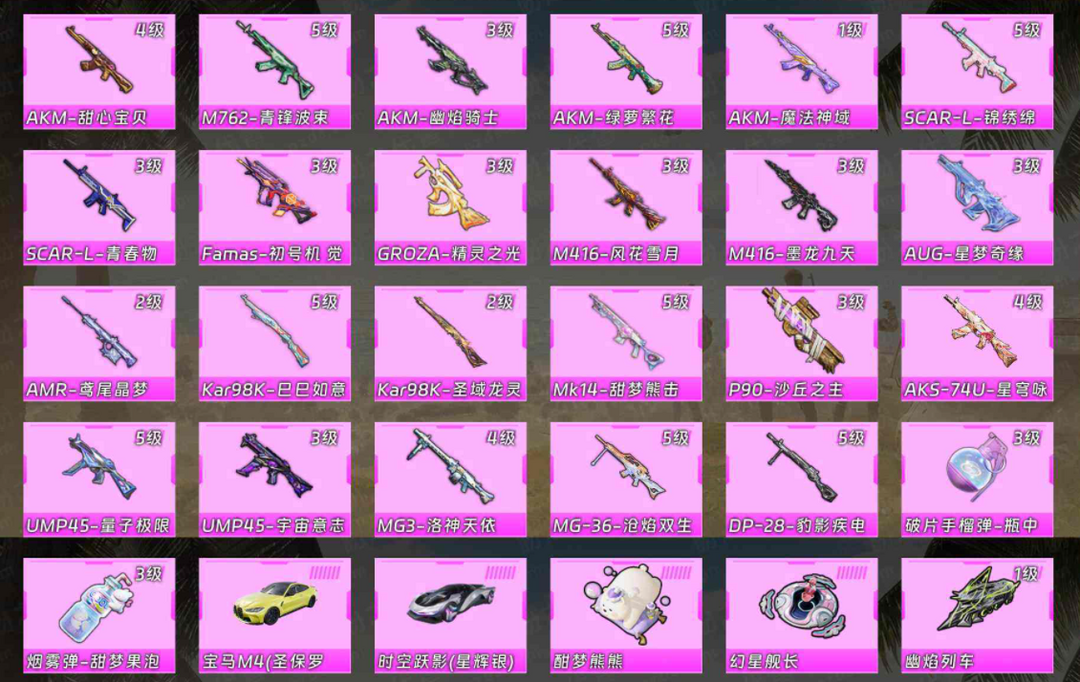 【红装:3 粉装:18 粉枪:25 载具:2】4级红木乃伊❤红维塔❤红塞卢❤粉蓝螳螂❤派对❤都市❤
