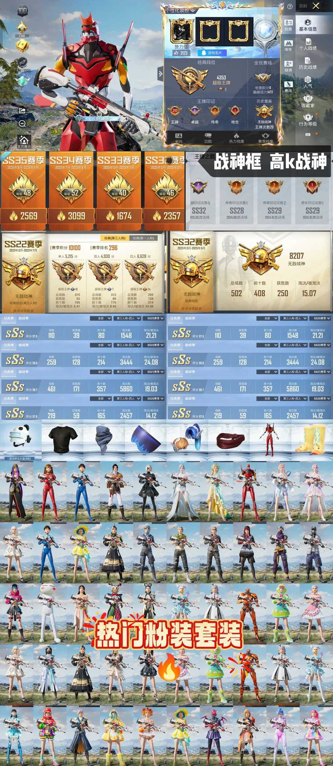限制: 租号8次及以上 |装备描述:多满级特效枪双战神多赛季高kd地铁满天赋双战神框红色螳螂星际漫游巧克力ak多赛季高k战神胖达头盔都市梦幻火箭地铁满天赋