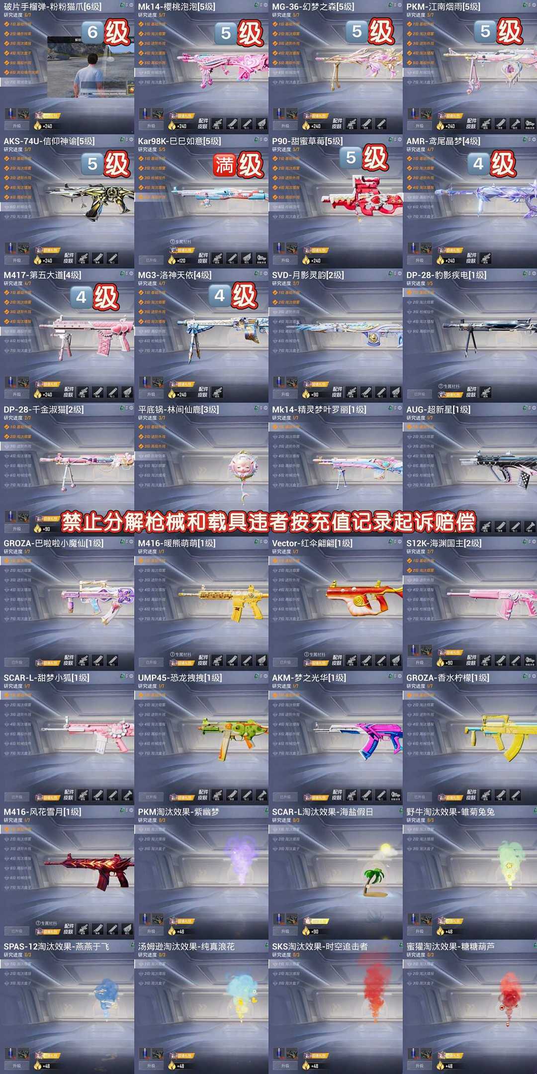 限制: 租号5次及以上 | 撤单率<60%才可租用此帐号装备描述:✔️游戏中途弹人 ,重新启动游戏即可。 !!禁止拆解枪械载具违者拉黑起诉!! 订单问题由平台客服处理,号主无权处理,有问题咨询平台客服 请勿伤害队友,如造成禁麦禁言,拉黑处理,请文明游戏。 ❌严禁开挂,恶意组队!【此号累计充值30万】使用外挂以及任何第三方软件导致账号封禁将由你本人承担一切法律责任《封禁按照累计充值起诉》《分解枪械载具照价起诉赔偿》不要以为用虚拟手机号,虚拟机,盗窃他人资料实名就找不到你,只要是你做过的任何事情在大数据面前是无处可逃,网络不是法外之地且行且珍惜!!