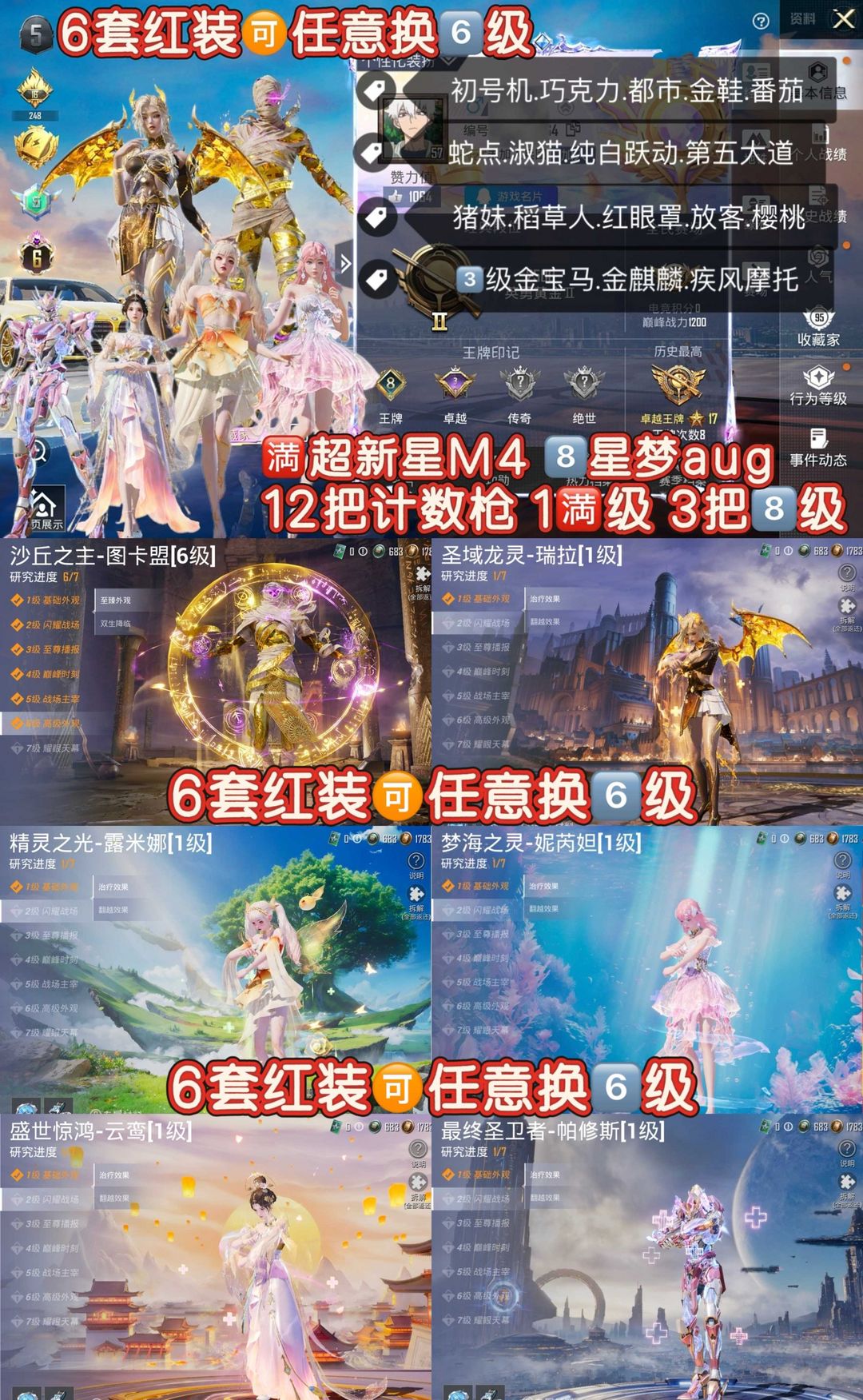 6级图卡盟露米娜6红装⭐6把9级满级超新星⭐星梦奇缘魔法万古精灵⭐3级宝马都市金鞋番茄