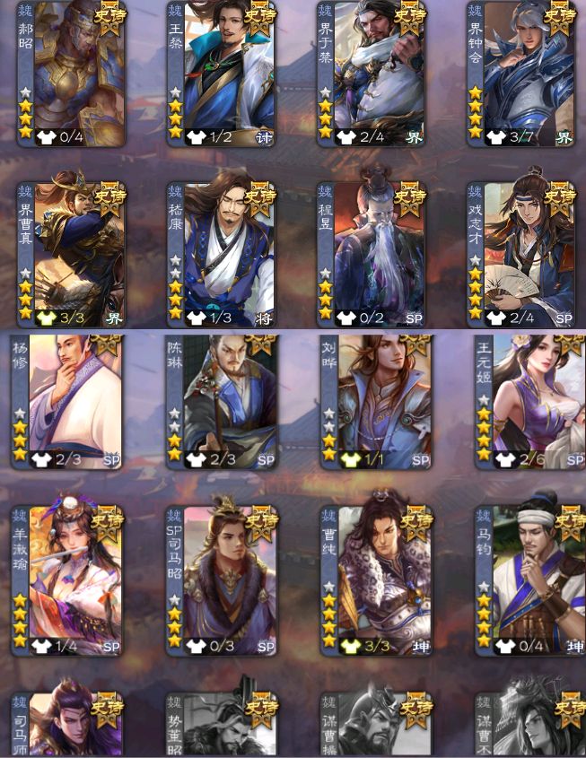 一等大将军74SS☆势魏延神司马懿动刘焉徐荣神甘宁神曹操神郭嘉杜预杨彪张仲景☆动界钟会界左慈动界徐盛