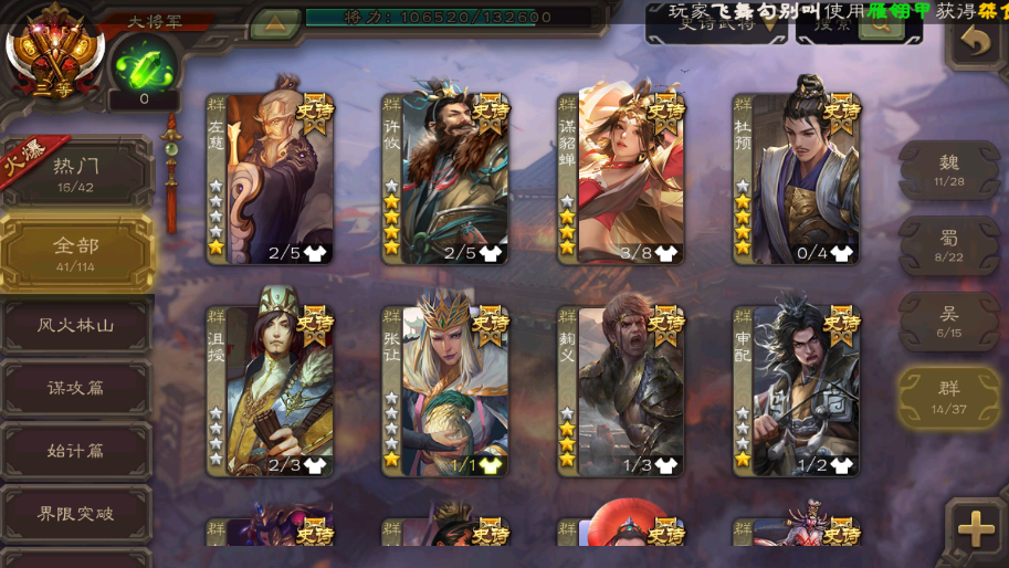 大将军【张奋】动刘焉★回廊文鸯★动谋黄盖回廊谋貂蝉回廊神孙策杜预界徐盛大宝灵魂歌王留赞神赵云