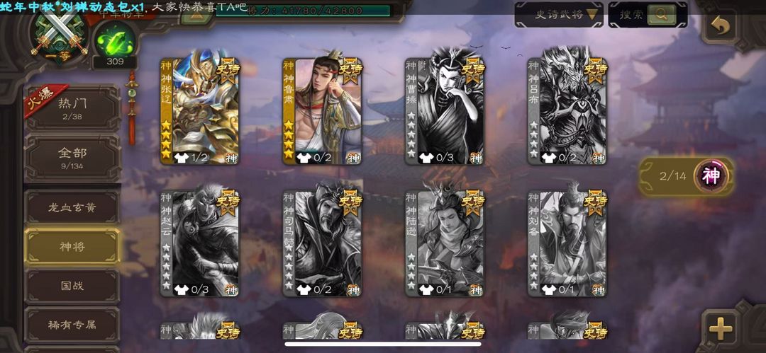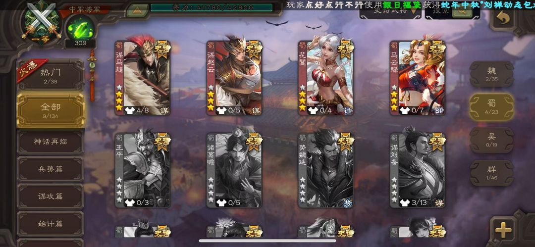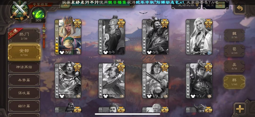 多点换将☆神张辽☆神鲁肃☆谋马超☆马云禄☆神赵云☆花鬘☆张让☆王粲☆程昱☆谋赵云