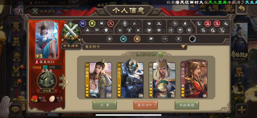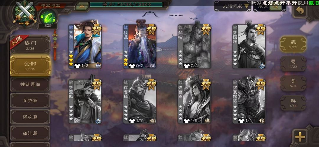 限制: 租号10次及以上 | 撤单率<50%才可租用此帐号装备描述:谋黄忠 动态刘焉动神甘宁神郭嘉神曹操王元姬大宝许攸 神吕布神陆逊神司马懿界于禁界钟会郝昭 嵇康 戏志才王元姬马钧周群骆统 周处 界朱然 杜预 界左慈界李儒 祢衡徐荣南华老仙 杨彪 星甘宁 63史诗将到期没人租,承诺至少15分钟内不顶号!号主很懒经常忘记顶号,白票久了请给个好评!谢谢!