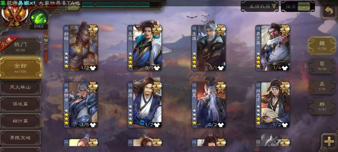 装备描述:动戏志才-神陆逊-关索-沙摩柯-动神吕布-动神赵云-动潘德功-麴义(白马)动界左慈