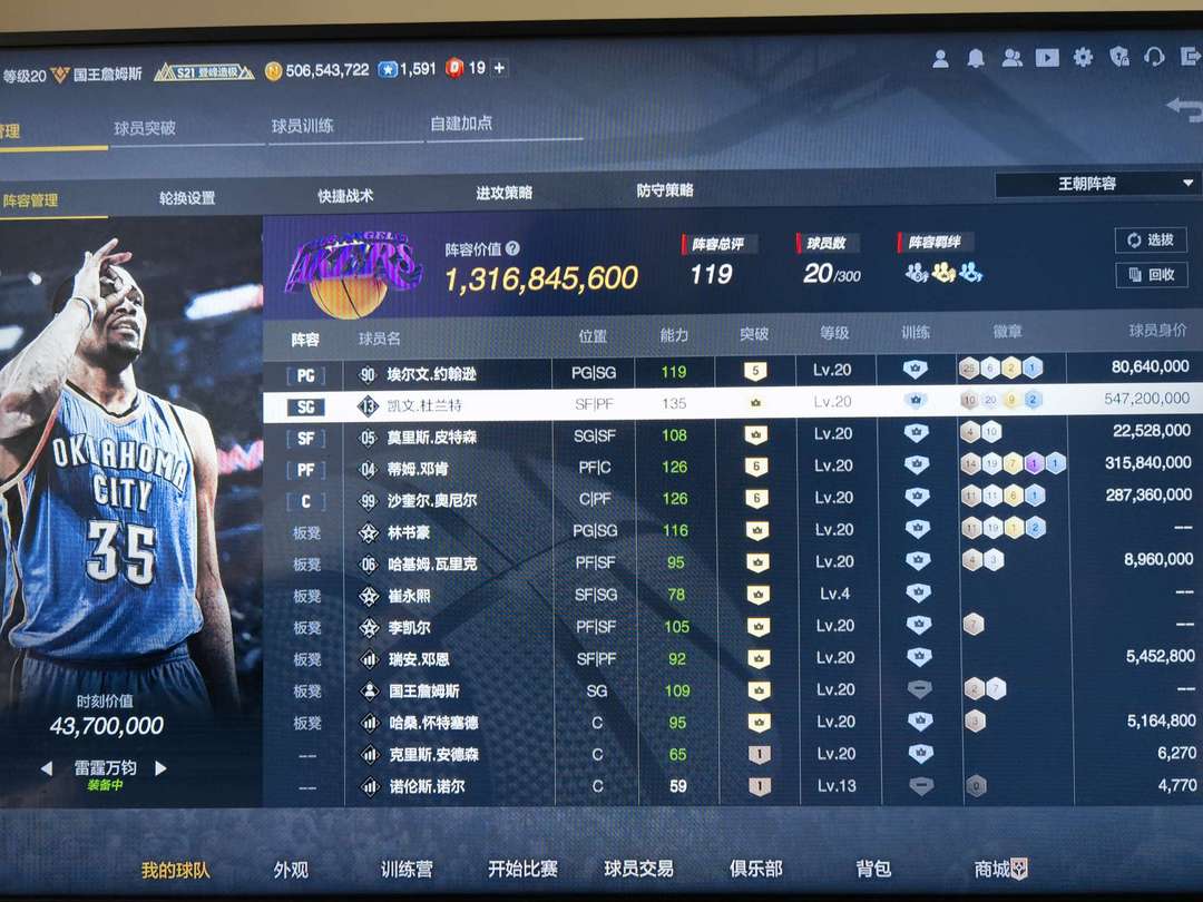 装备描述:13亿阵容,满图小时刻杜兰特,6奥尼尔,实战嘎嘎扣!邓肯飞天遁地