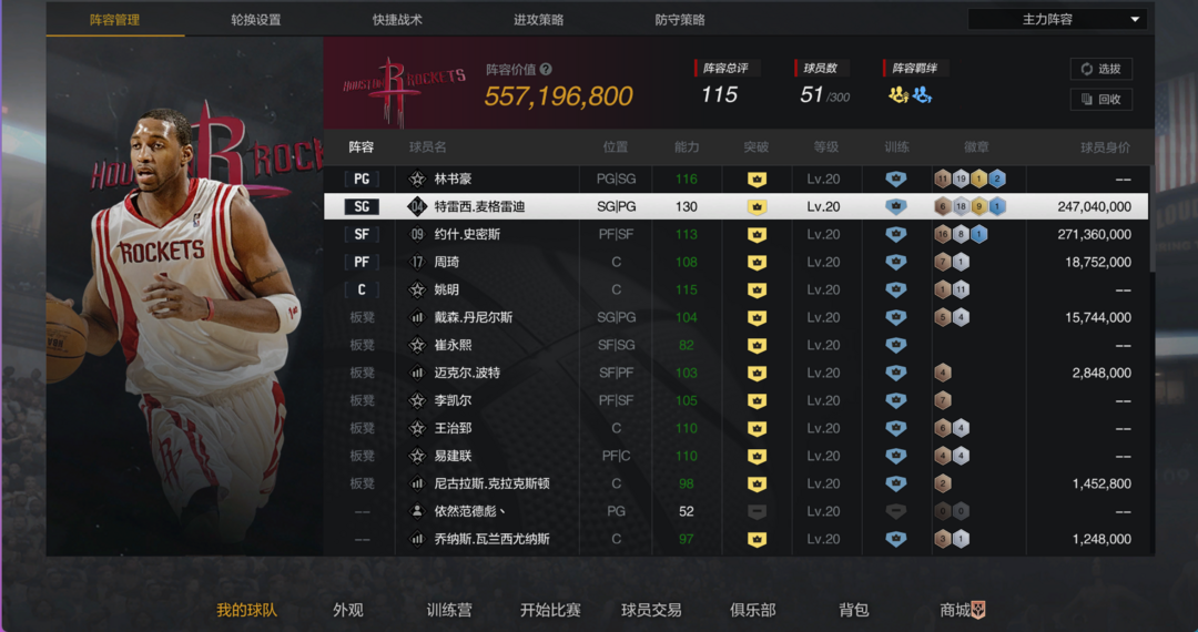 装备描述:陈列室火箭满突麦迪❤️陈列室火箭10突特雷西麦克格雷迪❤️麦迪 满突约什史密斯鹰王 满突姚明 鹰王 时刻林书豪 历史周琦 李凯尔 王治郅 易建联龙之队 多套时装 手机令牌等待即可不要关闭 信誉分不够排位