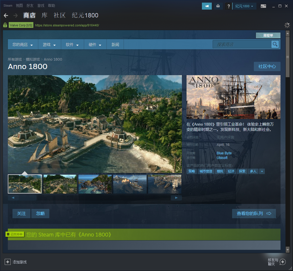 STEAM版【纪元1800-Anno 1800】抢先体验游戏!育碧密码看描述!